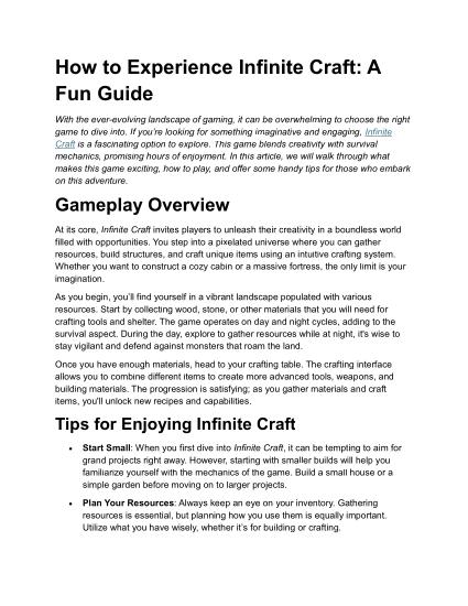 In the world of gaming, few experiences can compare to the joy of creation, exploration, and adventure. One such game that brings these elements together is Infinite Craft, a sandbox game that lets players unleash their creativity and ingenuity. Whether you’re a seasoned gamer or a newcomer, this guide will walk you through the essentials of playing Infinite Craft and help you make the most of your gameplay experience.