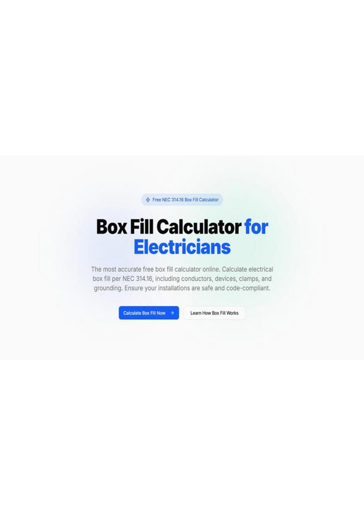 The most accurate free box fill calculator online. Calculate electrical box fill per NEC 314.16, including conductors, devices, clamps, and grounding. Ensure your installations are safe and code-compliant.